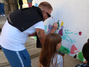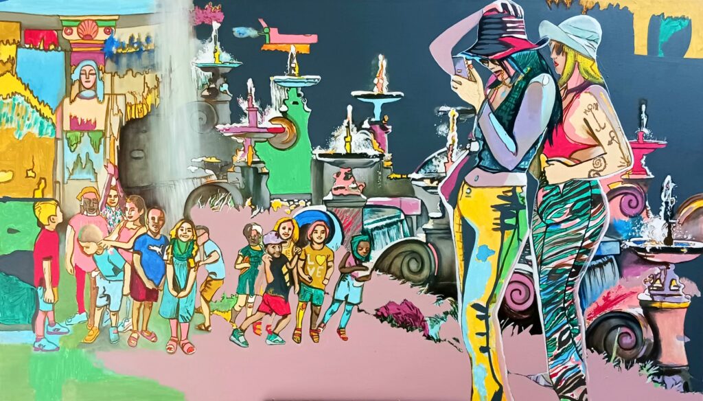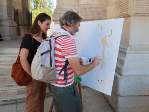 Commande de 4 tableaux pour la mairie de secteur, réalisés avec le public lors du Festival d’Art Contemporain Marcel Longchamp 2023. Acrylique sur toile, 150 x 90 cm Performance « public painting » ← Outsider Agora, Brandenburg 2023 Paréidolie, salon du dessin contemporain 2023 →